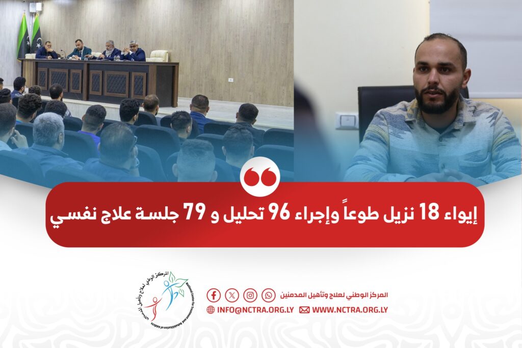 إيواء 18 نزيل طوعاً وإجراء 96 تحليل و 79 جلسة علاج نفسي